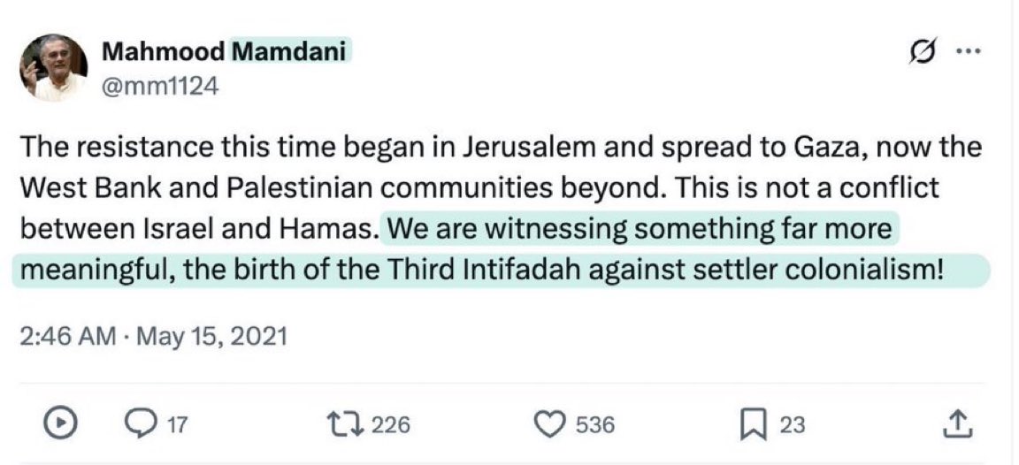 Zohran Mamdani’s father—a Columbia professor, who Zohran thanked when he won the primary election—believes:The Allies and Nazis had the same goalLincoln inspired HitlerWhite people are oppressors, America is evilThe first two intifadas consisted of suicide bombings and mass stabbings, Zohran Mamdani’s father is calling for a third. https://pbs.twimg.com/media/G3_KjgLXAAAr7UT.jpg